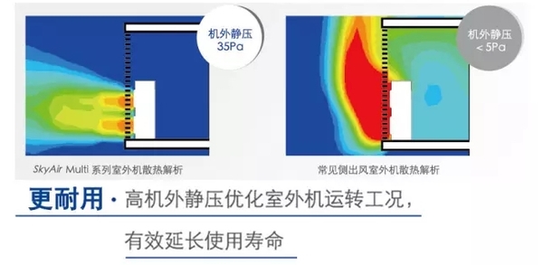 SkyAirMulti系列不僅機身小巧,可以根據業(yè)主需要隱藏在店鋪招牌后方、屋頂或建筑周邊綠化中,同時(shí)還輔以了長(cháng)配管設計和高機外靜壓,相較普通分體式一拖一空調,連接長(cháng)配管時(shí)空調能力更足,散熱能力更佳,具有更好的空調使用效果。