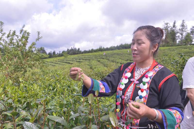 長(cháng)田壩村支部書(shū)記沙路正熱情地向我們介紹茶園種植的成果